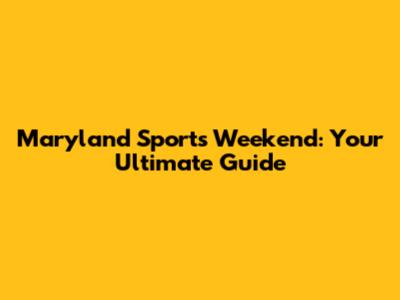 Maryland Sports Weekend: Your Ultimate Guide