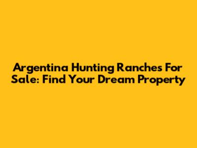 Argentina Hunting Ranches For Sale: Find Your Dream Property