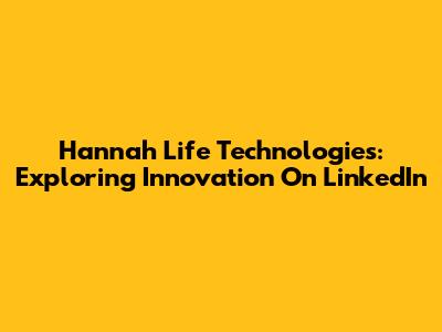 Hannah Life Technologies: Exploring Innovation On LinkedIn