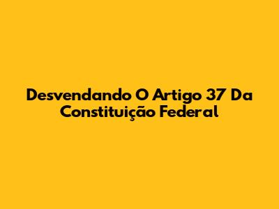 Desvendando O Artigo 37 Da Constituição Federal