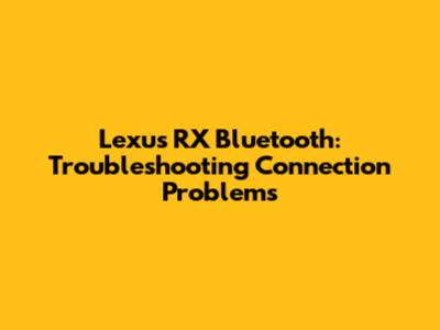 Lexus RX Bluetooth: Troubleshooting Connection Problems