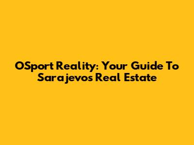 OSport Reality: Your Guide To Sarajevo's Real Estate