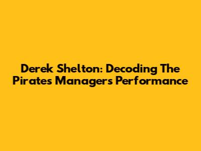 Derek Shelton: Decoding The Pirates Manager's Performance