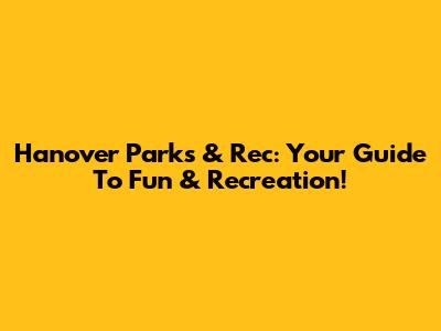 Hanover Parks & Rec: Your Guide To Fun & Recreation!