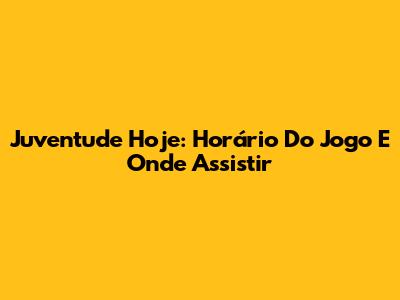 Juventude Hoje: Horário Do Jogo E Onde Assistir