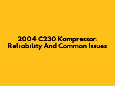 2004 C230 Kompressor: Reliability And Common Issues