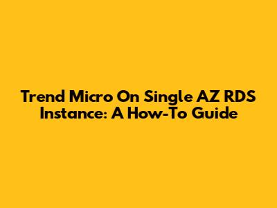 Trend Micro On Single AZ RDS Instance: A How-To Guide