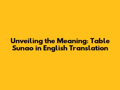 Hey everyone! Ever stumbled upon "table sunao" and wondered what in the world it means? You're not alone! It's a phrase that often pops up, and understanding its translation is key to unlocking its meaning. Let's dive deep and explore the table sunao in English translation together, shall we? This guide is designed to break down the phrase, explore its nuances, and offer insights into how it's used. We'll look at the literal translations, the cultural context, and the best ways to understand and use it yourself. Buckle up, because we're about to embark on a language adventure!