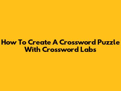 How To Create A Crossword Puzzle With Crossword Labs