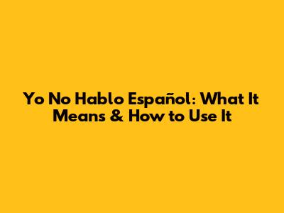 When to Use "Yo No Hablo Español"
